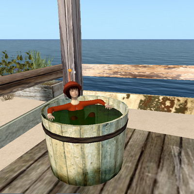 ここんちのおふろ。海辺にあって、1コのSIMを4人くらいの人でひろびろ