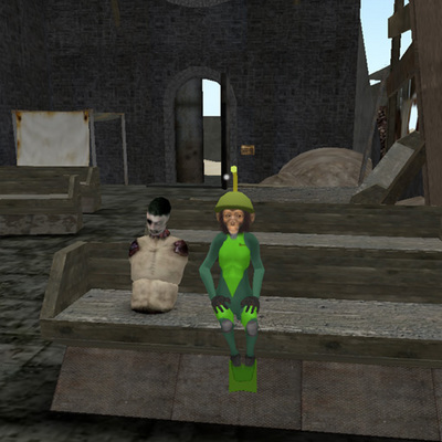 教会の廃墟みたいなとこにいたヒトとごいっしょにすわってみる。